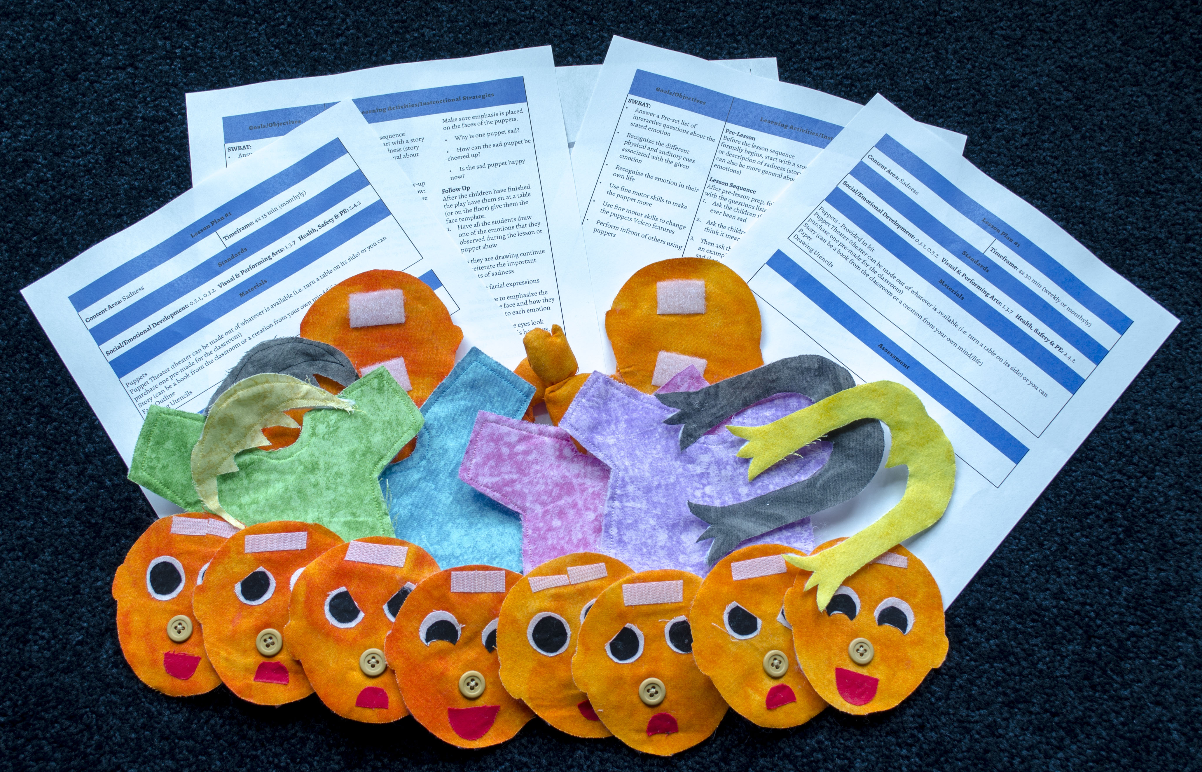 Grounded in the fundamentals of child development, and currently held educational best practices at the state, local, and teacher level, empatheater is a curriculum that is designed to strengthen preschool and pre-kindergarten students understanding of their own and others’ feelings. The affordable and easily implemented curriculum, taught over 4 lessons on a weekly or monthly basis, breaks down emotions into their physical, facial, and auditory components. These components are conveyed to the children through the use of interactive hand puppets and role-playing.